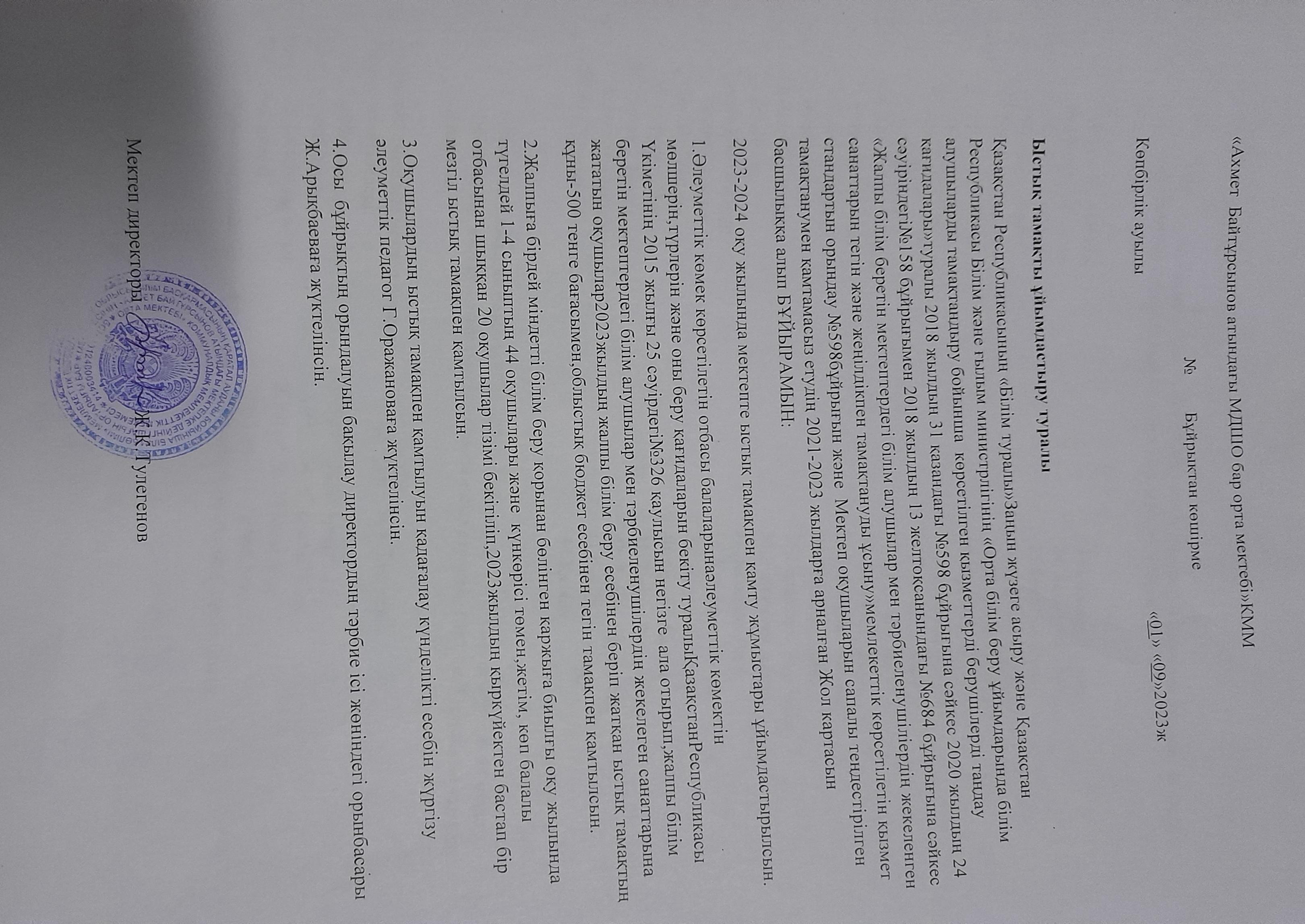 Мектеп асханасының жұмыс кестесі » А.Байтұрсынов атындағы орта мектеп
